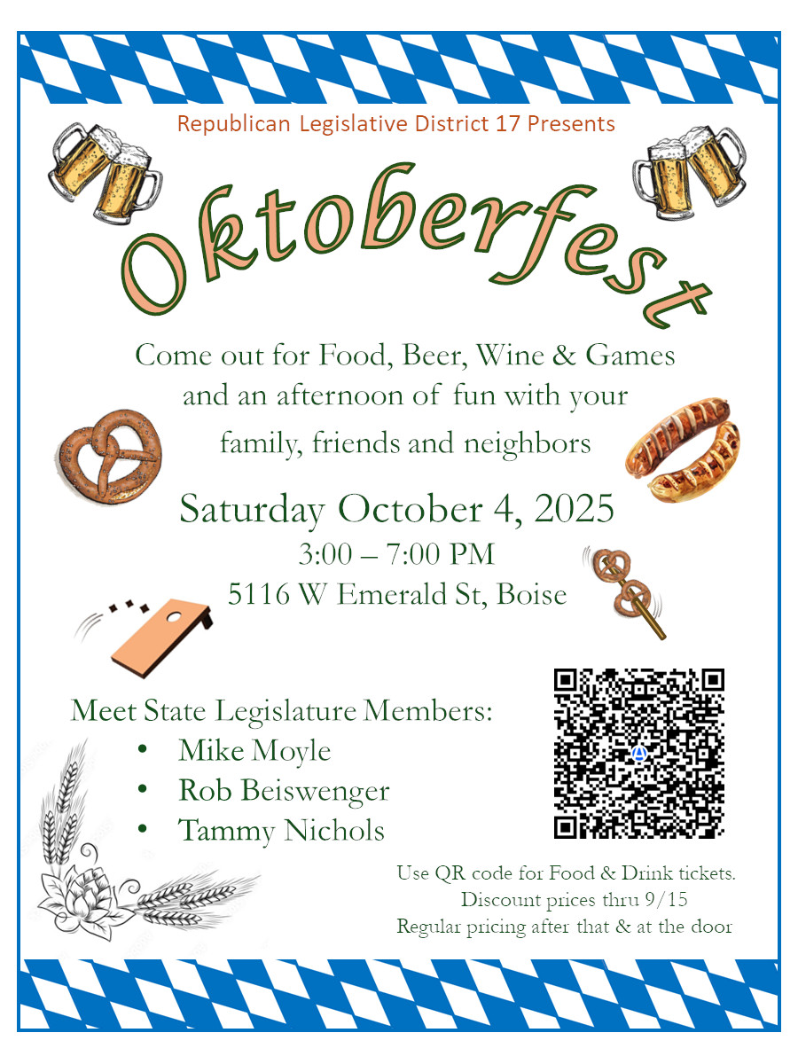• April 4, 2025, 6:30 pm — Ada County Lincoln Day 2025 with Congresswoman Harriet Hageman (R-WY)